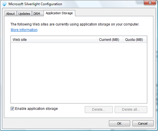 | CommentsSomeone posed this question (“Can you use IsolatedStorage in Silverlight as a more reliable browser caching technique?”) to me and I answered with my usual optimistic “in theory, yes” answer. Of course I had never tried it which is horrible to answer that to someone without trying it. In working on creating some Silverlight business application samples, I figured I should probably look at this scenario to see if a) it would work and b) it makes sense. I’ll at least try to answer “a” here.